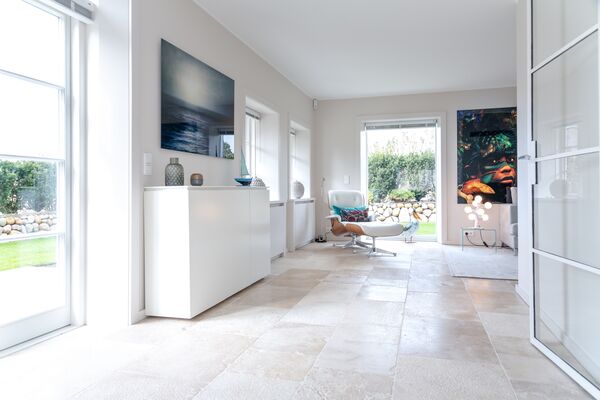 Exklusives Ferienhaus unter Reet in ruhiger Lage eingebettet in die Mellhörner Dünenlandschaft für bis zu 8 Personen. Das Haus besticht durch seine hochwertige Ausstattung und lichtdurchfluteten Räume. Das Erdgeschoss überzeugt mit einem wundervollen Wohn-Essbereich mit einer bestens ausgestatteten Küche sowie ein separates Gäste WC ist ebenfalls vorhanden. Im Obergeschoss befinden sich zwei großzügige Doppelschlafzimmer jeweils mit Fernseher, sowie ein geräumiges Duschbad . Zwei weitere Doppelschlafzimmer finden Sie im Untergeschoss jeweils mit Bad en Suite. Ein Hauswirtschaftsraum mit Waschmaschine und Trockner ist ebenfalls vorhanden. Genießen Sie die Ruhe auf den beiden dazugehörigen Terrassen. Pkw - Stellplatz und Garage steht am Haus den Gästen zur Verfügung.